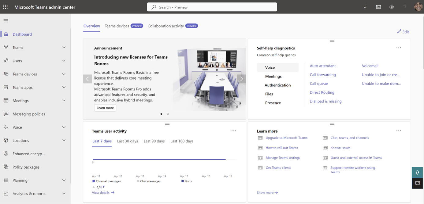 Im Rahmen unserer laufenden Bemühungen, unseren IT-Administratoren die bestmögliche Erfahrung zu bieten, freuen wir uns, ein lebendiges neues Erscheinungsbild für das Teams Admin Center einzuführen. Dies ist eine deutliche Verbesserung gegenüber der vorherigen Version und bietet mehrere wichtige Verbesserungen, von denen wir glauben, dass sie Teams-Administratoren sehr zugute kommen werden.